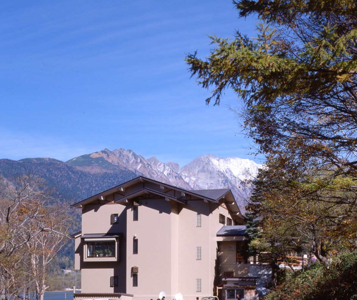 バス停前に位置し、上高地散策の出発地点で河童橋まで徒歩60分、バス10分の好立地です。