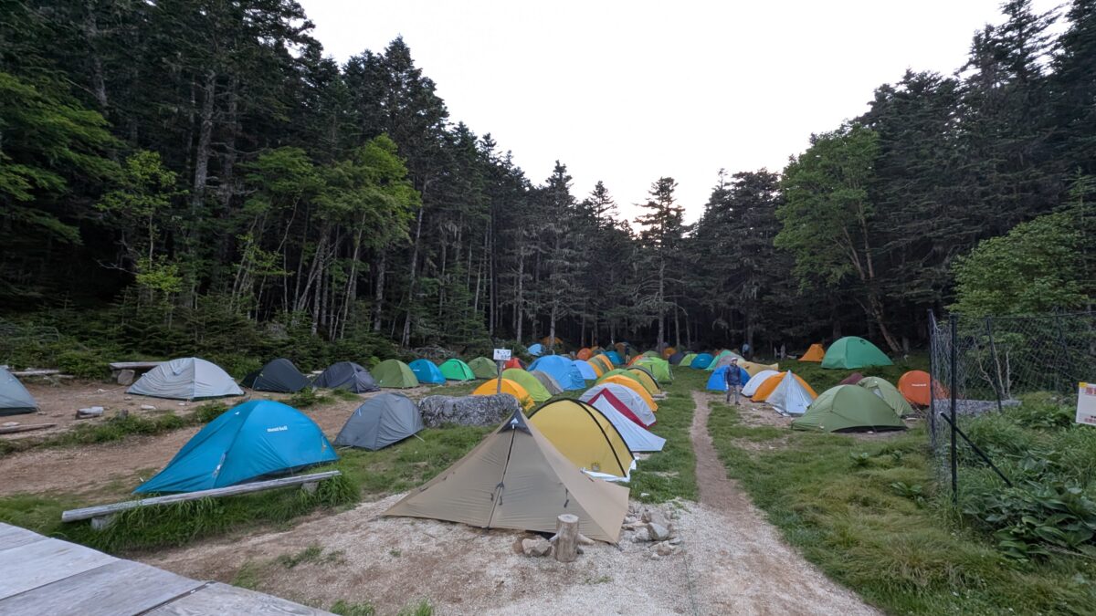 森の中には広いテント場もあり、学生も多く利用しています。